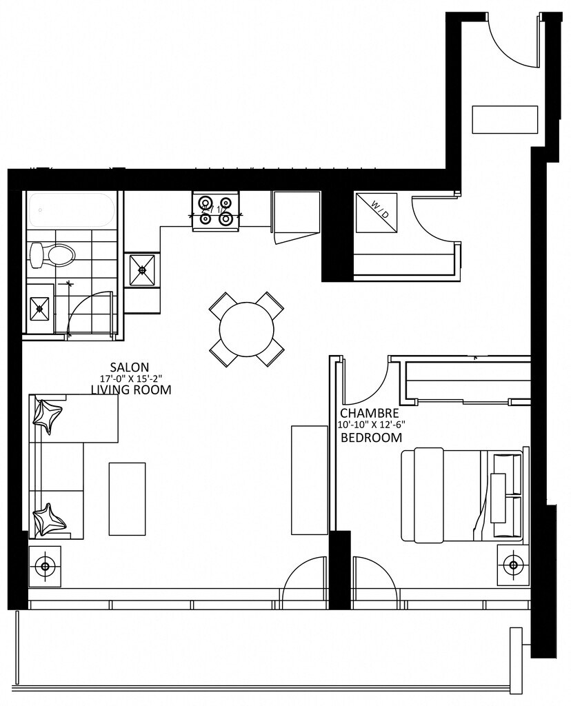 1 Dormitorio, 1 Baño, 950 pies²Disponible AhoraGalería del Modelo