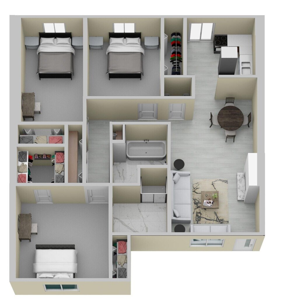 Modelo de apartamento: Three BedroomDesde $1,4253 Dormitorios, 2 Baños, 1400 sq ftNo Disponible![]()