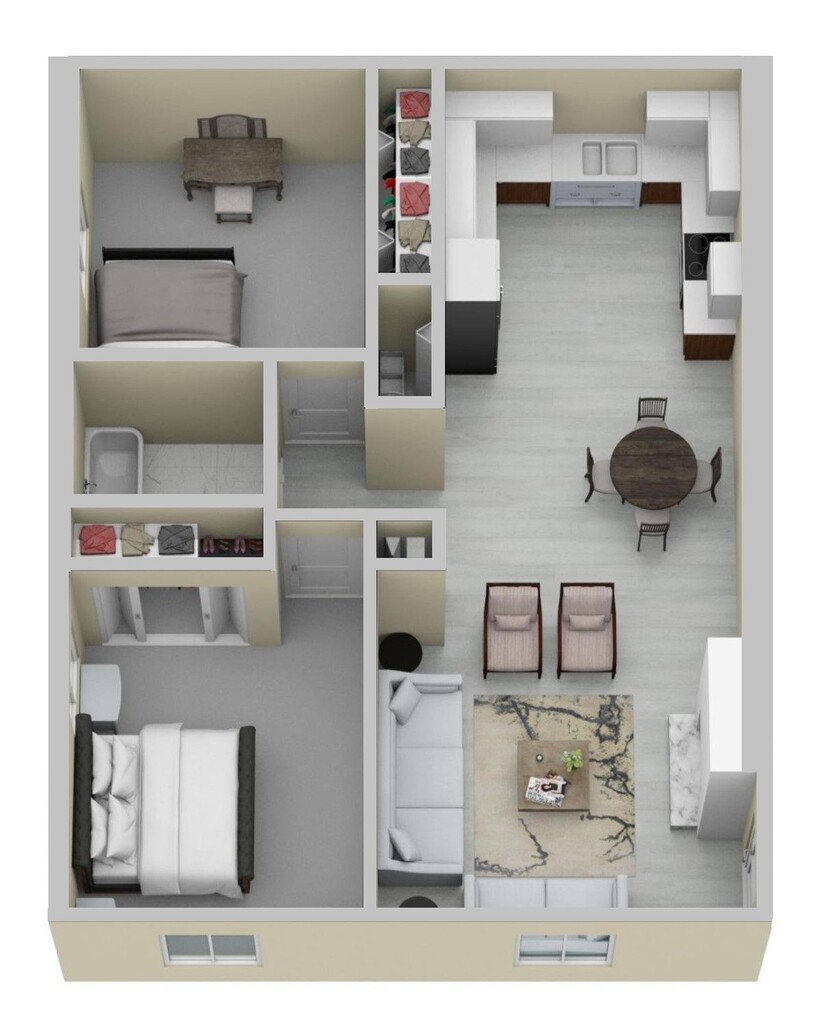 2 Dormitorios, 1 Baño, 900 pies²Galería del Modelo