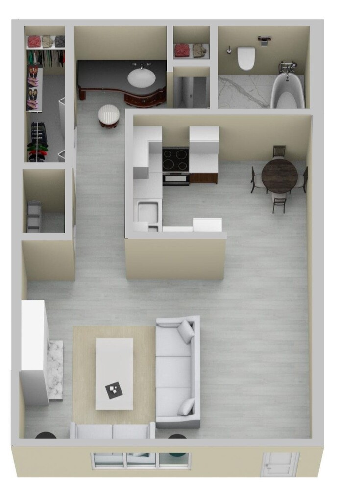 Estudio, 1 Baño, 625 pies²Disponible AhoraGalería del Modelo
