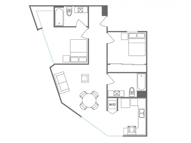 Modelo de apartamento: B22 Dormitorios, 2 Baños, 980 sq ftNo Disponible![]()