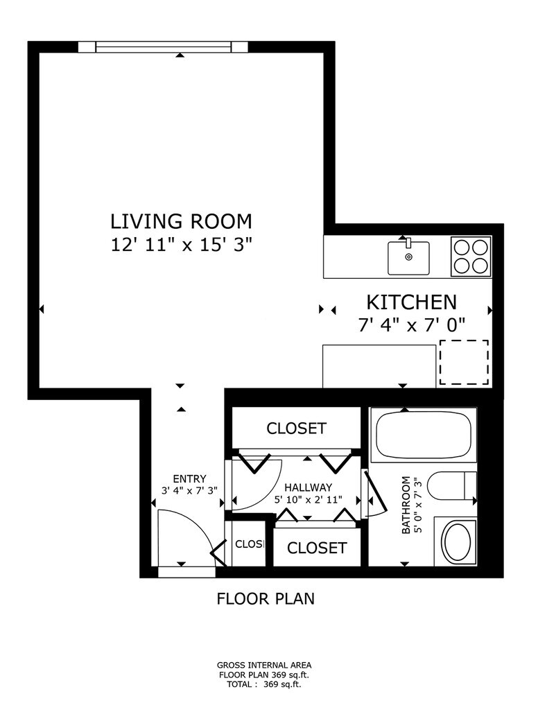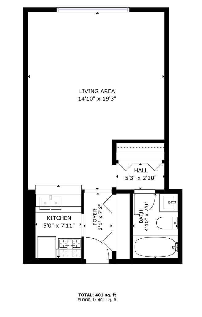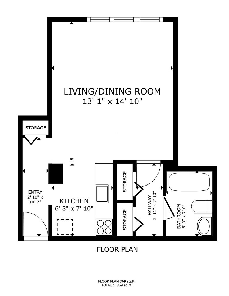 Estudio, 1 Baño, 369-401 pies²Disponible AhoraGalería del Modelo