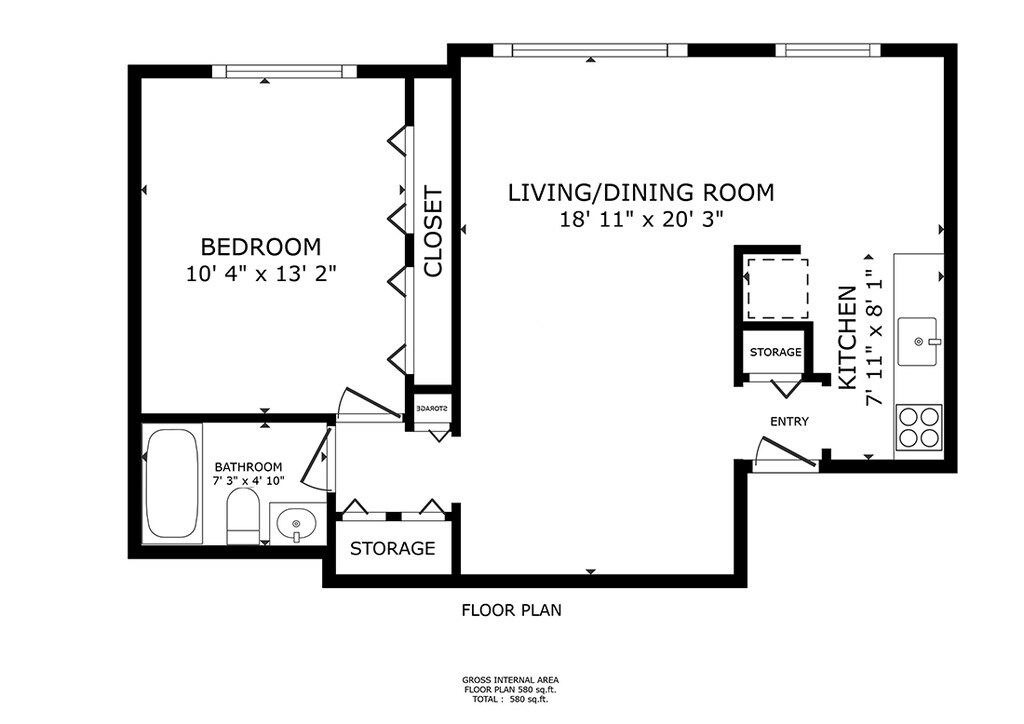 1 Dormitorio, 1 Baño, 580-590 pies²Disponible AhoraGalería del Modelo