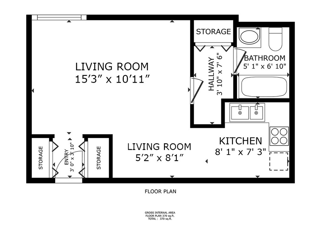 Estudio, 1 Baño, 375-400 pies²Disponible AhoraGalería del Modelo