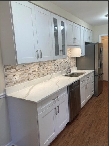 Totally Remodeled 2BR 2BA condo for rent located in the heart of downtown Arlington Heights. New kitchen with white cabinets, quartz countertops, & SS appliances. Both baths are remodeled with ceramic & marble tile. New windows and carpet...what else could you need? All this, plus Arlington Heights restaurants, shopping & nightlife right in your backyard. A commuter's dream! Service dogs are acceptable.