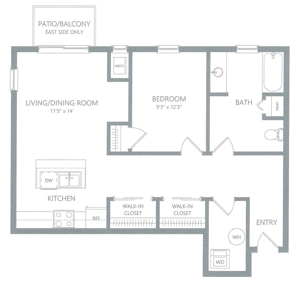 Modelo de apartamento: The Ford1 Dormitorio, 1 Baño, 840 sq ftDisponible January 10, 2026PlanosFotos![]()