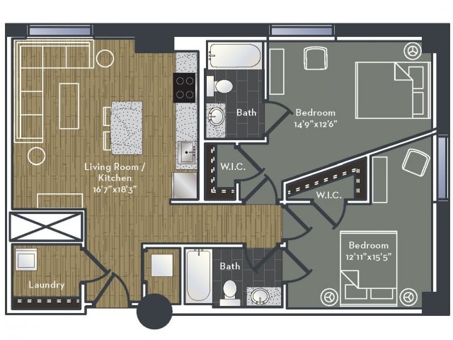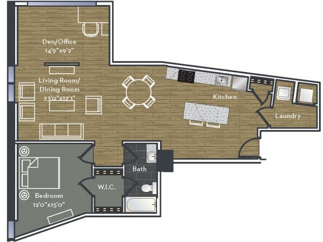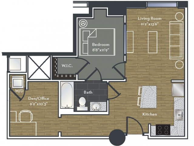 Modelo de apartamento: The DowntownerDesde $1,763Estudio, 1 Baño, 478 sq ftDisponible Ahora![]()