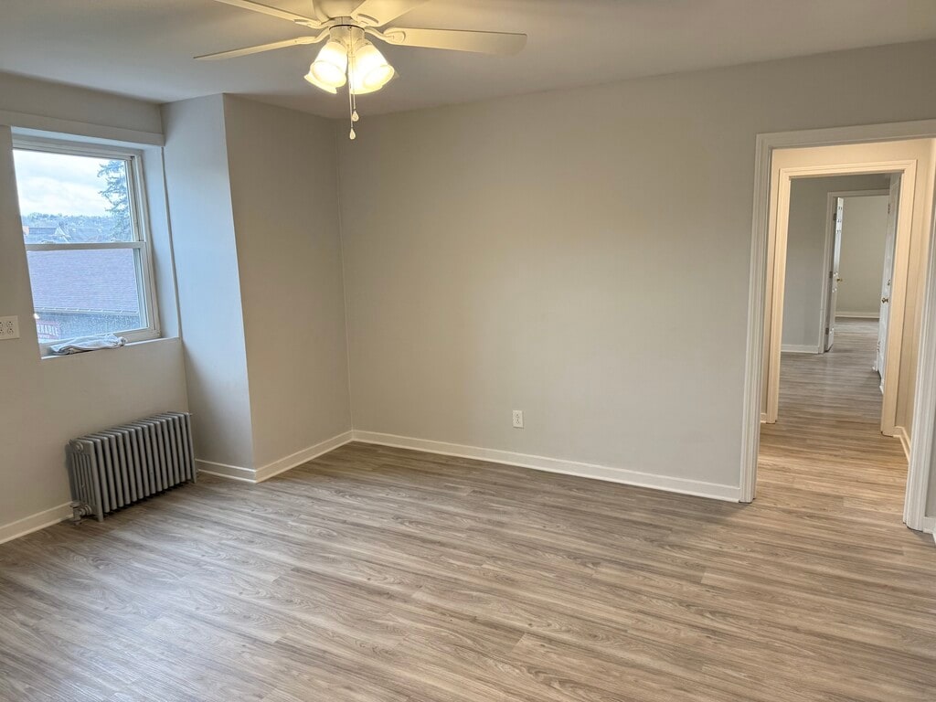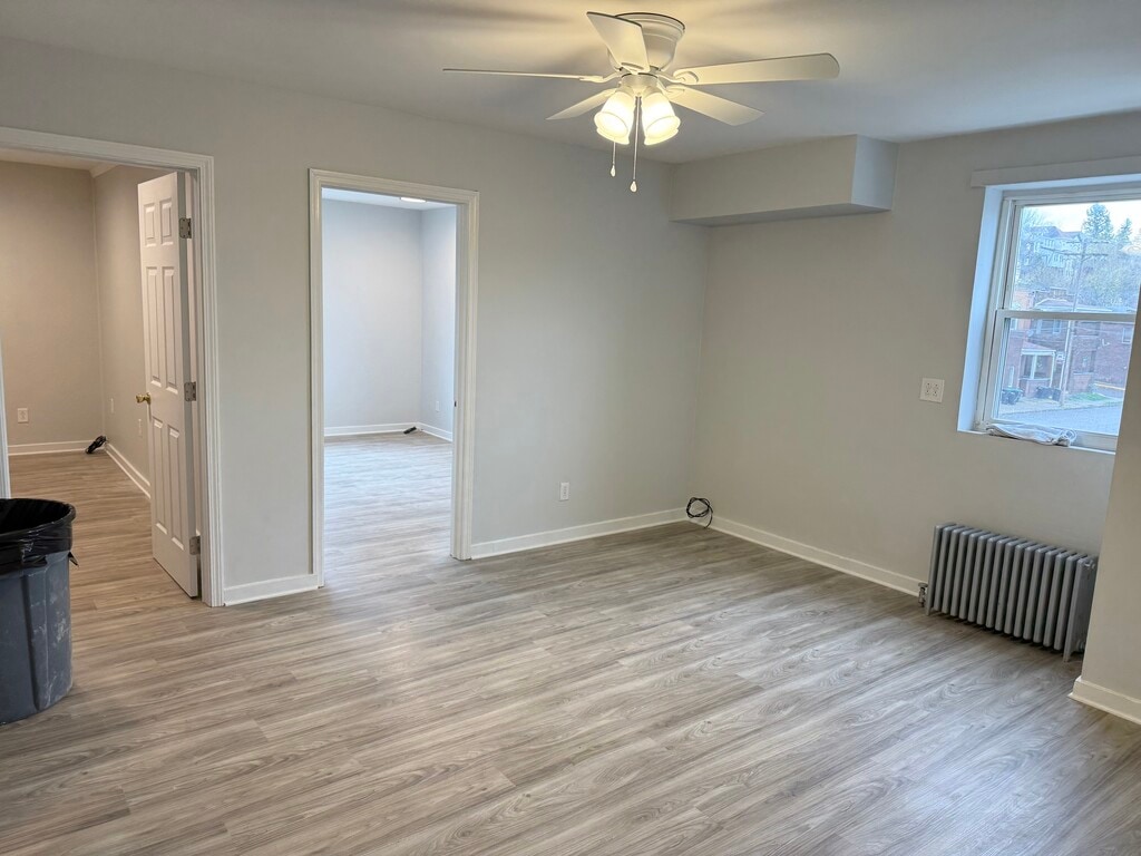 This 2nd floor, beautifully remodeled apt is located on broadway, in Stowe Township, only one block from the new municipal/police building. Brand new kitchen and appliances. New flooring and lighting/fans throughout. 4 nicely sized bedrooms. Nice sized living room. All new Large, eat-in, fully equipped kitchen, with disposal, stove, fridge, dishwasher and microwave. Common hallway with washer and dryer hook ups. Washer/dryer available for $40 month. Heat is radiator heat. Ceiling fans in most rooms. NO PETS, No Exception. Parking is on-street $1,100 plus all utilities (electric, gas, water and sewage) Applicants must have 600 credit score and income 3x rent. Available 5/1/25