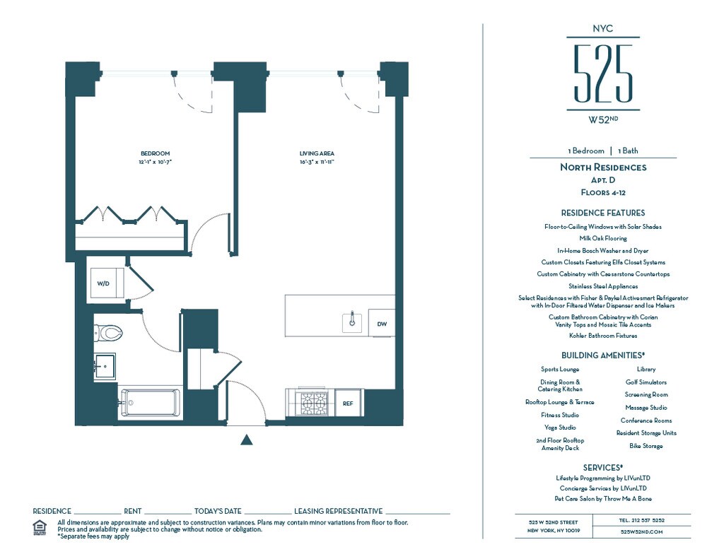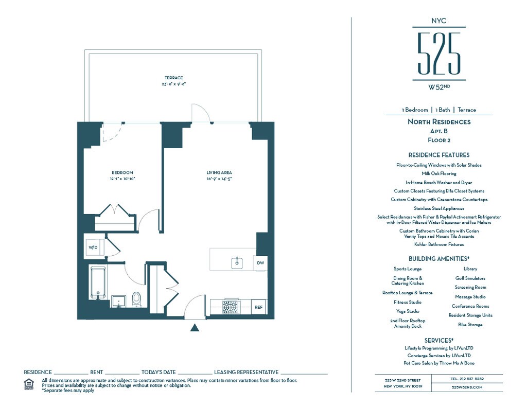 La ciudad de Nueva York es un lugar con historia y un espíritu innovador. En 525, adoptamos ese espíritu mientras que nos fundimos profundamente en las raíces de esa historia. Perfectamente ubicado en el centro del vibrante vecindario de Hell's Kitchen, 525 está rodeado de grandes centros de cultura, comercio, y actividades sociales, tales como el parque Hudson River Park, el distrito de teatros, Times Square, y Hudson Yards. Cuidadosamente diseñada por Handel Architects, nuestra fachada de ladrillos y nuestro cálido ambiente de inspiración industrial rinden homenaje a las fábricas que alguna vez estuvieron aquí mientras que las comodidades y el nivel de servicio inigualable son el epítome de lo mejor de las comodidades modernas. Este es un lugar que honra el alma, la esencia, y los valores integrados y conectados con la comunidad a la que llama hogar.