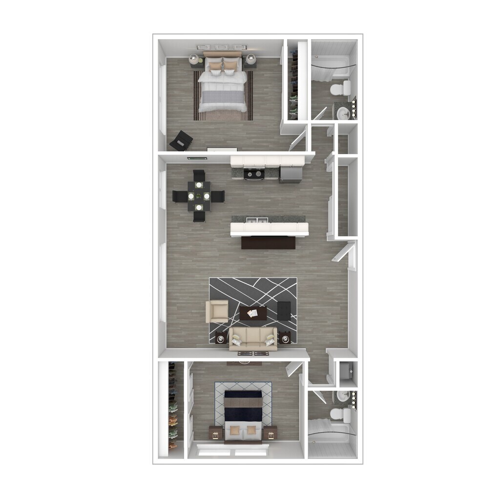 2 Bedroom - Plano 4 Unidad de apartamento: 202Modelo de apartamento: 2 Bedroom2 Dormitorios, 2 Baños, 990 sq ftDisponible December 21, 2025