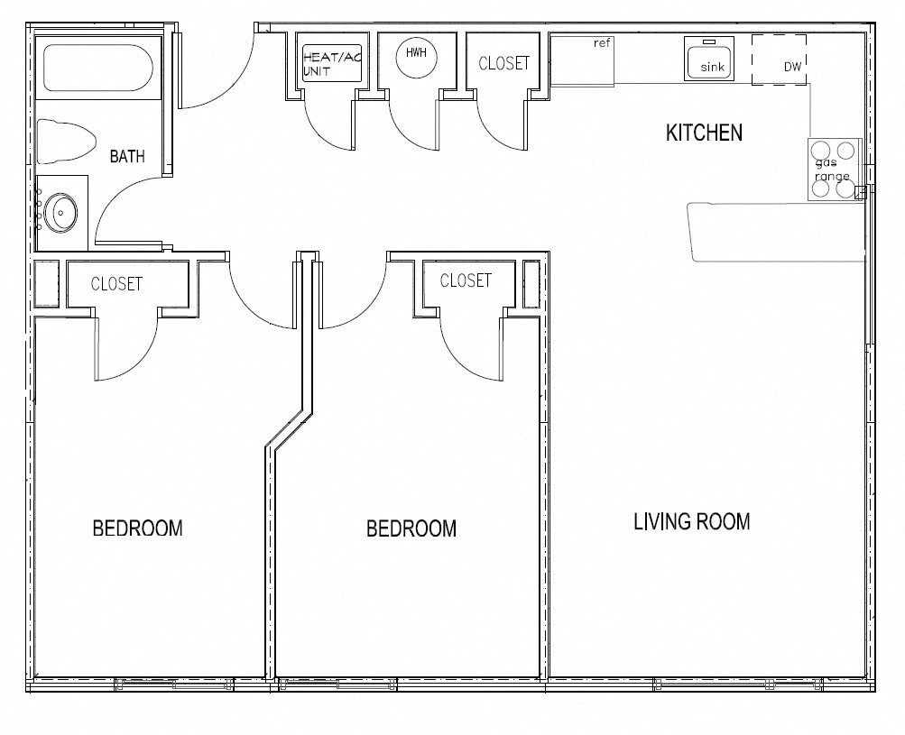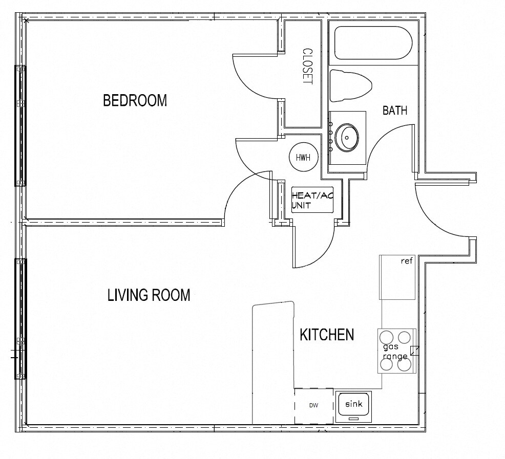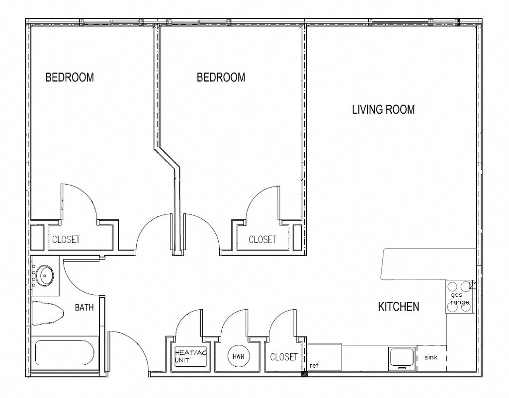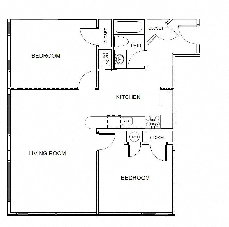 2 Bedroom 1 Bath - Plano 1 ![]()