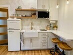 DISPONIBLE DEL 21 DE FEBRERO AL 15 DE ABRIL ÚNICAMENTE. LEA: El alquiler SOLO está disponible durante un mínimo de 30 días y un máximo de 3 meses. Incluya las fechas de entrada/salida solicitadas con todas las consultas. Alquiler de apartamentos tipo estudio recientemente construidos y amueblados en el patio trasero, ideales para viajeros profesionales/de negocios o estudiantes. Envíe la consulta, incluidas las fechas de inicio y finalización. Depósito de garantía de $750. Todos los muebles, servicios públicos y artículos esenciales incluidos: toallas, ropa de cama, platos, televisor inteligente, wifi rápido, amplio armario y mucho más. Amplio patio con comedor al aire libre, fogata, barbacoa y equipo de juegos para niños. Cocina bien abastecida con un hermoso refrigerador retro, cafetera, estufa de dos quemadores, horno de microondas, triturador de basura, utensilios, vajilla, ollas y sartenes, utensilios de cocina, sal y pimienta, aceite, café y más. Bar en la encimera para comer o trabajar. Cama Queen y sofá cama doble. Amplio estacionamiento en la calle sin necesidad de permiso. A pasos de la lavandería, a una cuadra y media de distancia. La unidad mide aproximadamente 28 metros cuadrados/300 pies cuadrados en la planta baja y es un lugar hermoso y tranquilo para trabajar o divertirse. Estamos muy bien ubicados a menos de 19,3 kilómetros/12 millas de Hollywood, el centro de LA, Burbank, Glendale y Pasadena, y a una corta distancia en bicicleta de Rose Bowl, Occidental College, una infinidad de restaurantes y pubs únicos, boutiques y mucho más. Eagle Rock es un vibrante vecindario conocido por su diversidad, cultura artística (incluidos paseos artísticos mensuales), pintorescas boutiques, restaurantes de moda y acogedores pubs. Hogar de Occidental College, también cuenta con una próspera comunidad de estudiantes. El estacionamiento gratuito está disponible en la calle de nuestra casa y suele ser muy fácil de encontrar. Ofrecemos estacionamiento en nuestra entrada para cargar y descargar artículos personales. Se puede navegar fácilmente por el vecindario en automóvil y todos los objetos esenciales también están lo suficientemente cerca como para ser fácilmente accesibles caminando o en bicicleta. Nos encontramos a sólo 4,8 kilómetros/3 millas de la estación de trenes Highland Park Gold Line, que se conecta con varios lugares de Los Ángeles, incluidos el centro de la ciudad y Hollywood. Tenga en cuenta que el patio trasero es un espacio compartido. Probablemente verá y escuchará a nuestra familia jugar en el patio o trabajar en el jardín. Ocasionalmente tenemos pequeñas reuniones con amigos y nuestros huéspedes siempre están invitados a unirse. Se permite una mascota (40 libras como máximo) por un cargo adicional, pero DEBE aprobarse antes del arrendamiento.