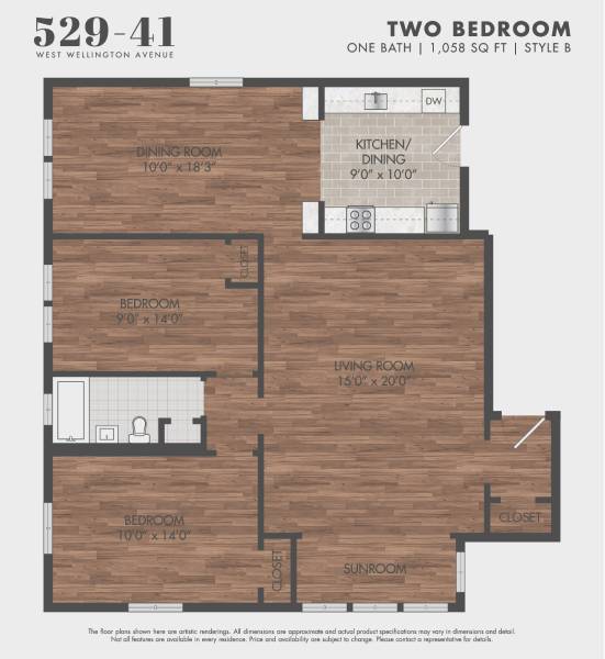 2 Dormitorios, 1 Baño, 1058 pies²Galería del Modelo