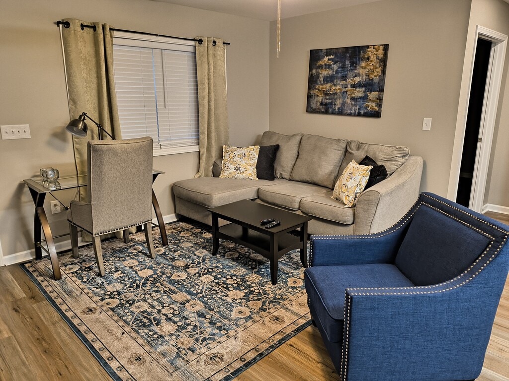 New construction apartment located in Manchester just one mile from I-24. This unit really has it all. Spacious floor plan boasting approximately 950sf of living space and an 80 sf, affixed, climate-controlled storage area. This unit features two bedrooms and two full bathrooms. Easy-to-care-for LVP flooring and tile throughout. Furnished with stainless steel refrigerator, range, dishwasher, and microwave. But if cooking is not for you, we’ve got a solution for that too. 25 restaurants are within a one-mile radius. Don’t own a washer and dryer? Not a problem, a new stackable GE washer and dryer are furnished as well. The master bedroom/closet/bathroom has all the appointments; ceiling fan, 2” blinds, walk-through closet which opens into a full bathroom with a double bowl sink and full-sized enclosed tub/shower unit. 36” door openings were designed for those needing spacious doorways to accommodate assistive mobility devices. This low-density dwelling is one level, with handicap accessible parking and access to the apartment. But the real star of the show is its location. This residence allows for quick and easy access to I-24. Located less than 30 minutes from local employers such as AEDC Air Force base, Manchester Industrial Park, Nissan Powertrain plant, Bridgestone, and Yorozu. Local ownership means you don’t have to email the property owner and wait days for a response. A background check is required for adults, and a no pet policy is enforced.