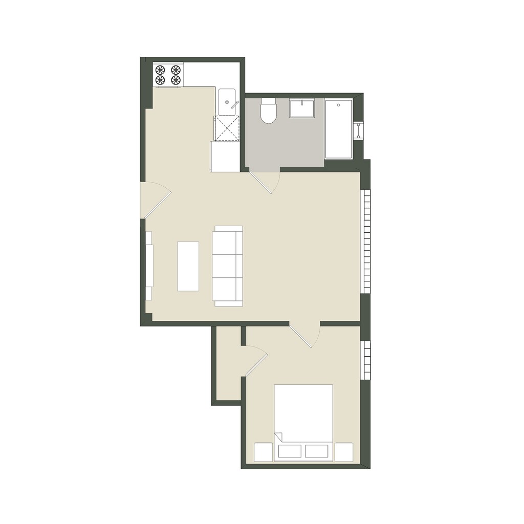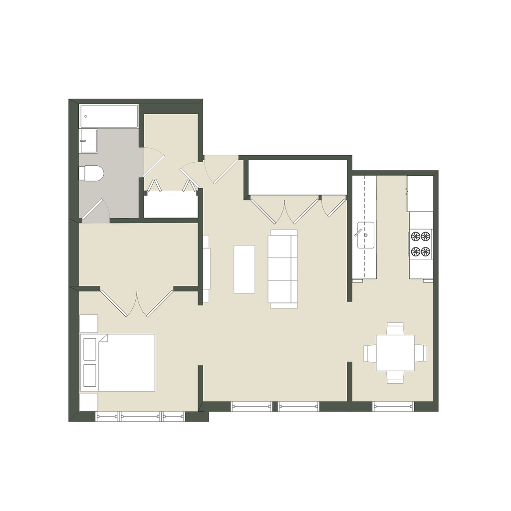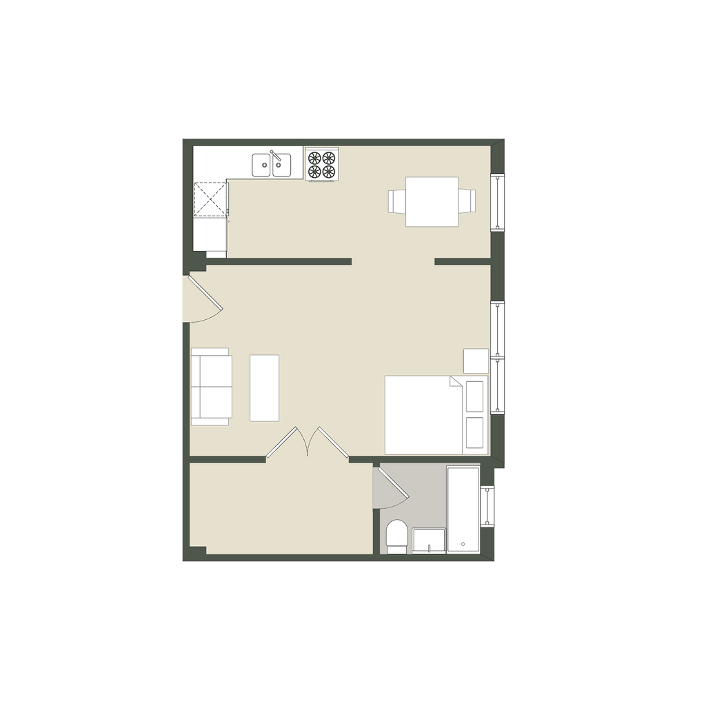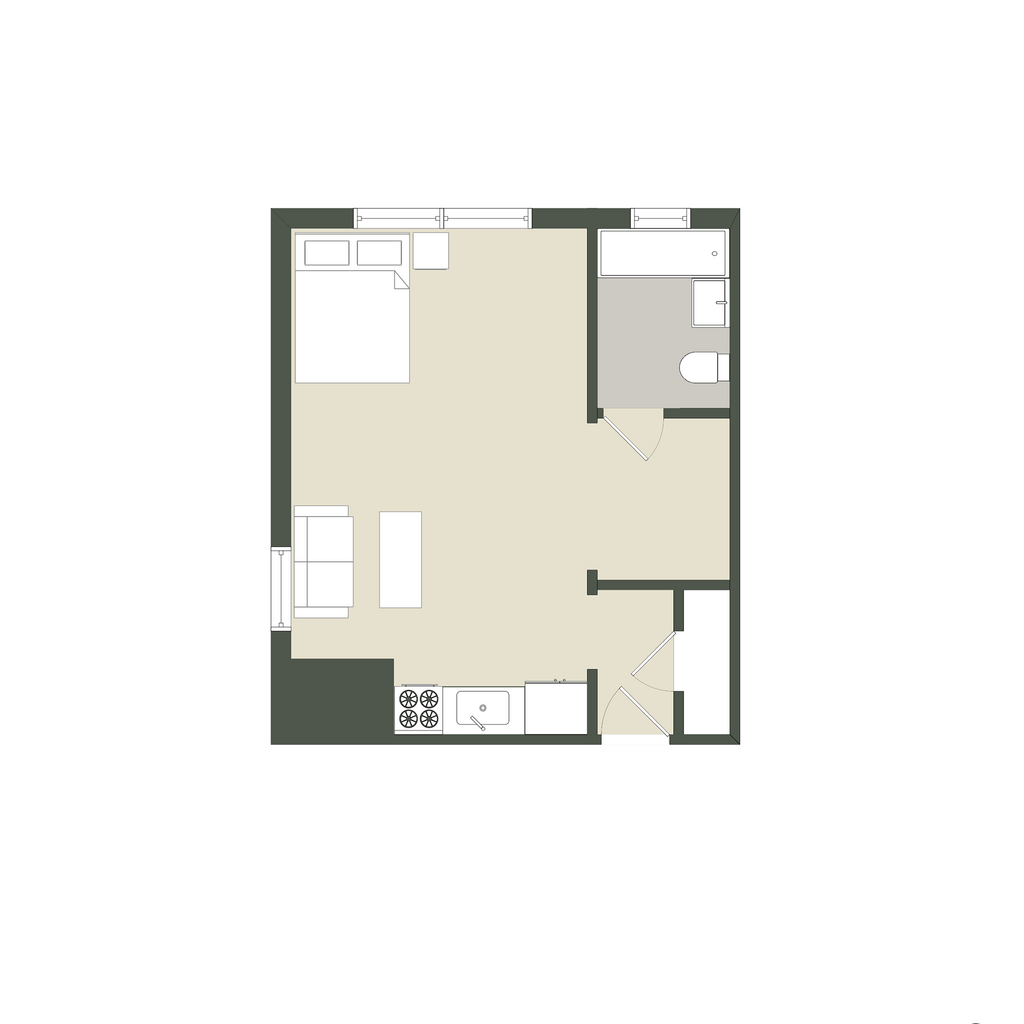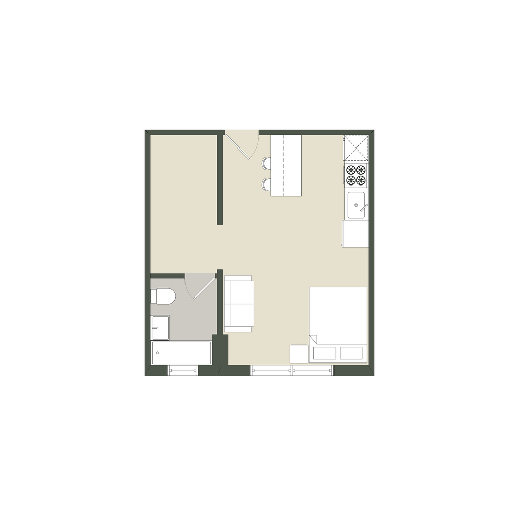 Estudio, 1 Baño, 296-351 pies²Disponible AhoraGalería del Modelo
