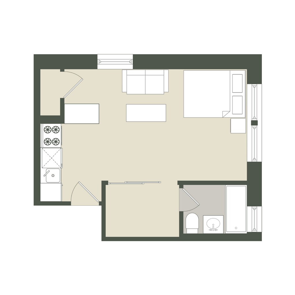 Studio - Plano 10 Unidad de apartamento: 114Modelo de apartamento: StudioEstudio, 1 Baño, 351 sq ftDisponible June 1, 2026![]()