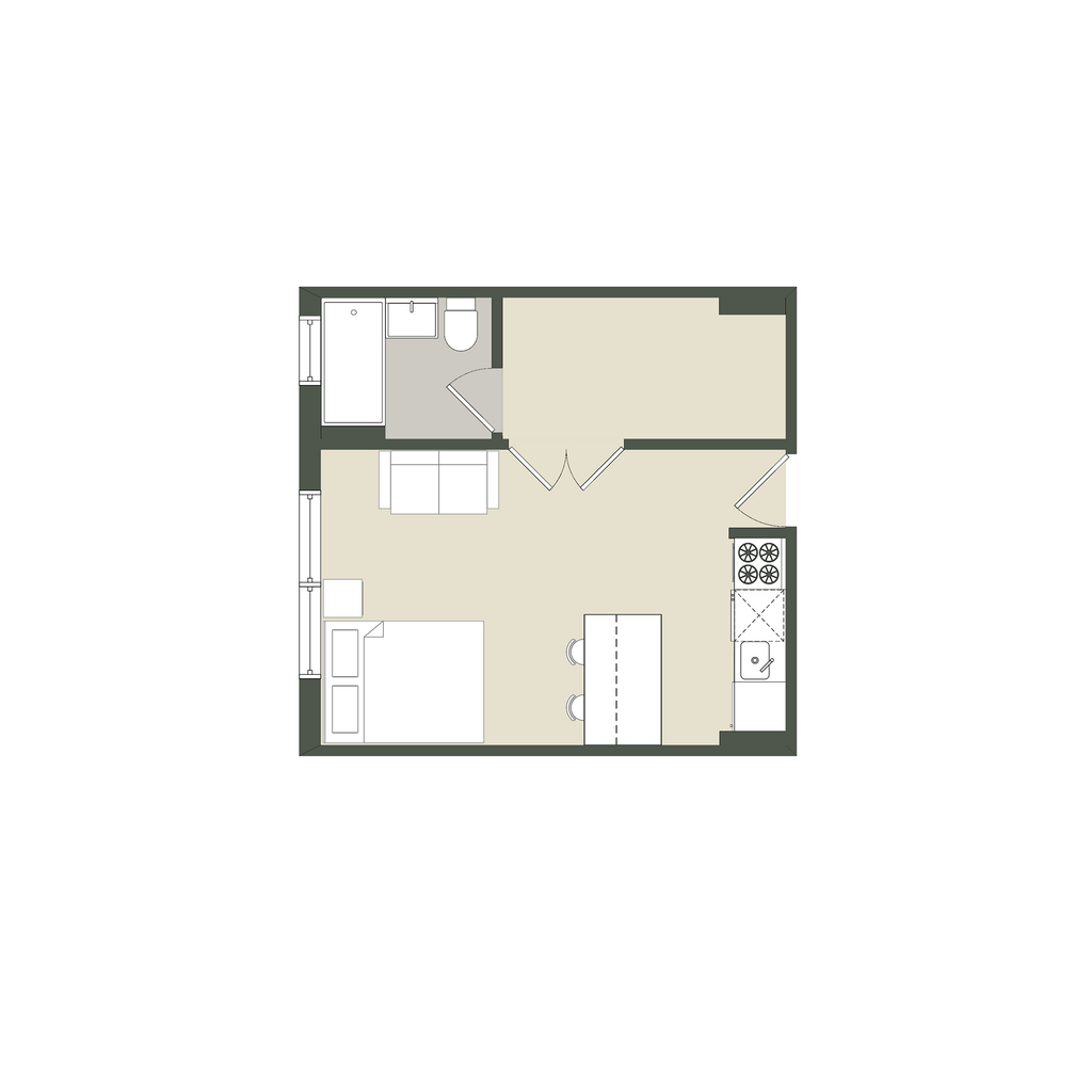 Modelo de apartamento: StudioEstudio, 1 Baño, 296-351 sq ftDisponible Ahora![]()