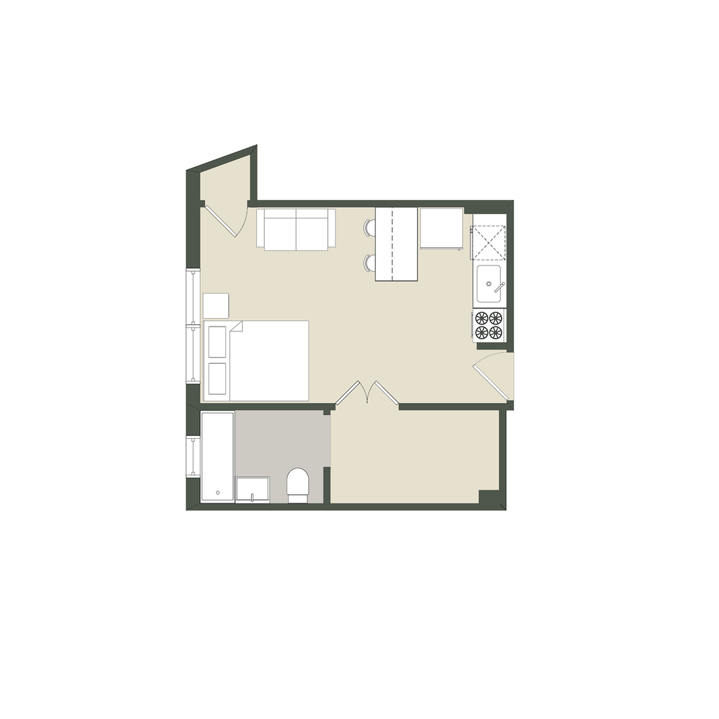 Modelo de apartamento: StudioEstudio, 1 Baño, 351-496 sq ftDisponible June 1, 2026![]()