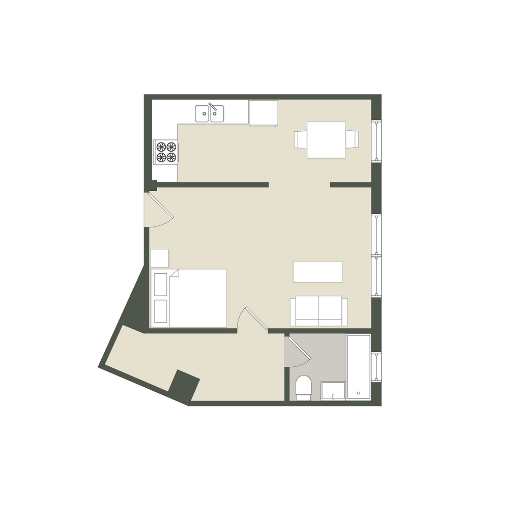 1 Bedroom - 1 Bathroom - Plano 4 One Bedroom, 800 sq. ft.