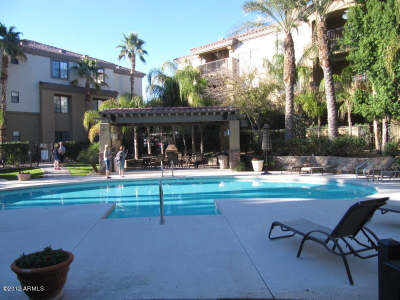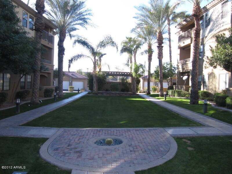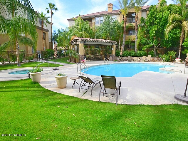 This is a beautiful 2 bedroom, 2 bath condo in a great location. Top floor. Highly upgraded! Granite and beautiful cabinets. Upgraded baths. Covered patio over looking green area and water feature. Complex is gated, pool, spa and fitness center. Close to downtown, 202 and ASU. Resort-like gated community offers a pool, spa, 2 BBQ areas, clubhouse with fitness center, pool tables, tvs. There are fountains throughout to sit and enjoy the weather. Great central location - 1.8 miles to MILL AVE, near airport, backs to Papago Park, golf course, bike to Tempe Town Lake, near oldtown Scottsdale and walk to spring training games. Let me know if you'd like me to send you a video tour of this condo.