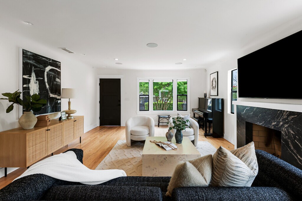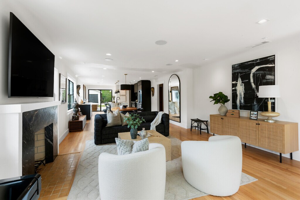An exquisite blend of elegance and comfort, this beautiful contemporary Craftsman Home in Park Mesa Heights is just a short distance from world-class art museums and music and sports centers. Meticulously maintained privacy hedges set the stage for what lies beyond a highly customized interior design showcasing quality craftsmanship, imbued with soft white tones, a Lutron light system, custom door millwork throughout, and gleaming white oak hardwood floors. Ideal for entertaining or corporate assemblies. Large windows bring in natural light and create a relaxing resort-style atmosphere across the open-concept layout.
