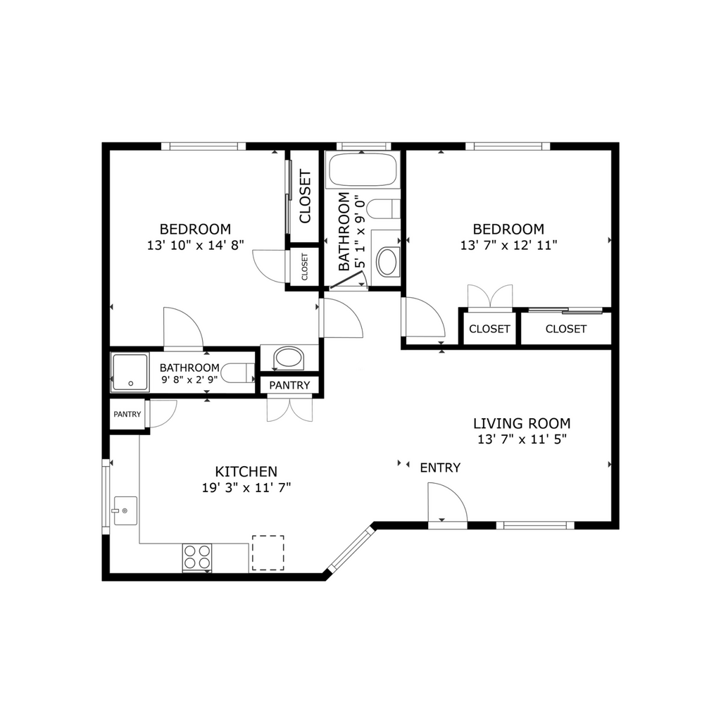 2 Bed, 1 Bath - Plano 6 2 Bed, 1 Bath