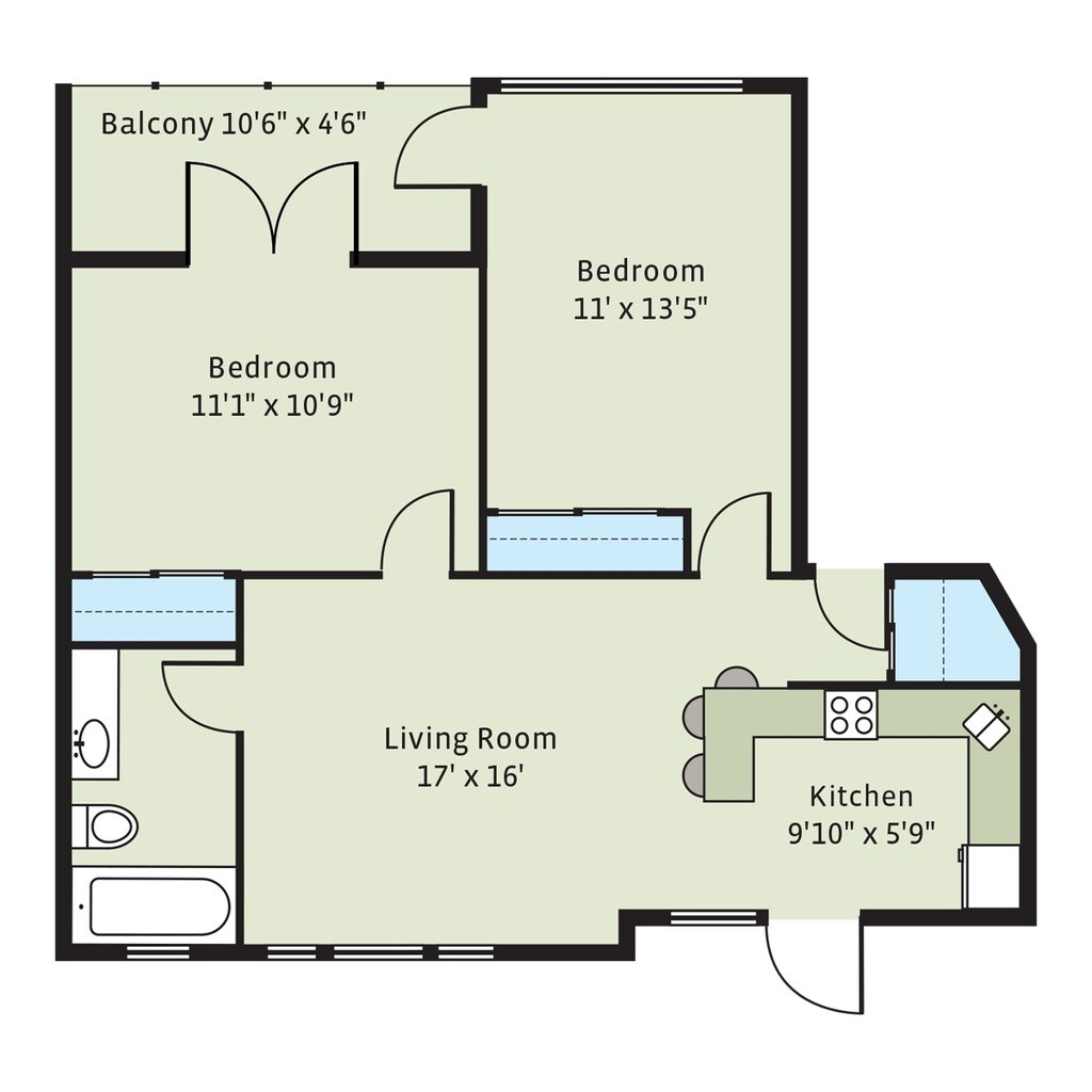 2 Dormitorios, 1 Baño, 975 pies²Disponible Oct 10El más grandeEsta opción tiene las unidades más grandes para este modeloGalería del Modelo