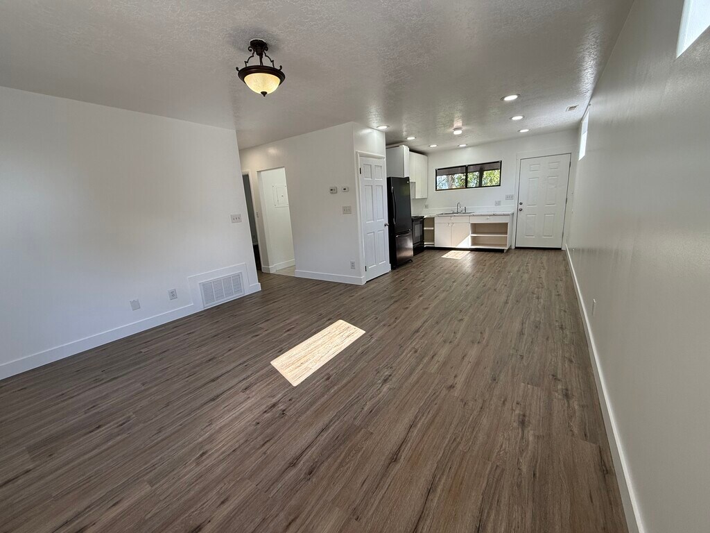 2 bedroom, 1 bath second floor home, with open concept kitchen/living room and large bedrooms with spacious closets. New central air. Newly remodeled bathroom and updated kitchen. New paint and vinyl flooring. Very quiet and private, this home does not share any walls with other units. Only two units total on the property, located on a quiet private road in the heart of Taylorsville, on Jordan Canal Road near a park, library, pool and public transit routes. NO PETS. NO SMOKING. Background and credit check required. Listing contact is a licensed Realtor. Square footage figures are approximate.