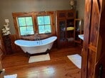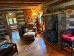 Cozy cabin with access to a swimming pool, hot tub and basketball court. It has a small front porch and a back deck with a gas grill. Very calm setting. Totally furnished. Livingroom has a fireplace.