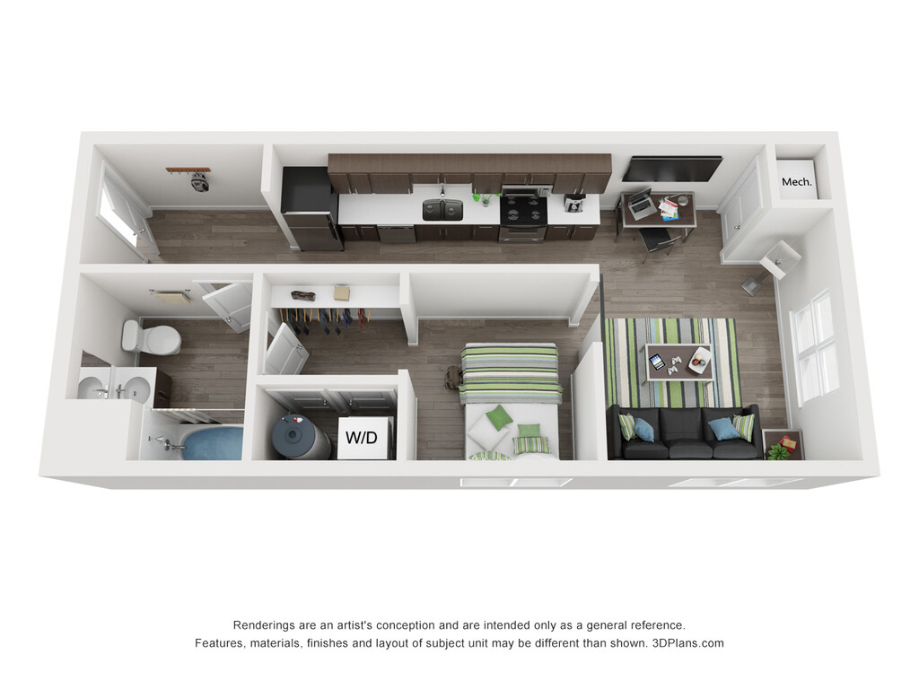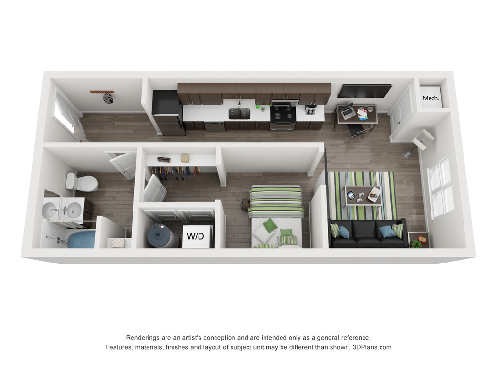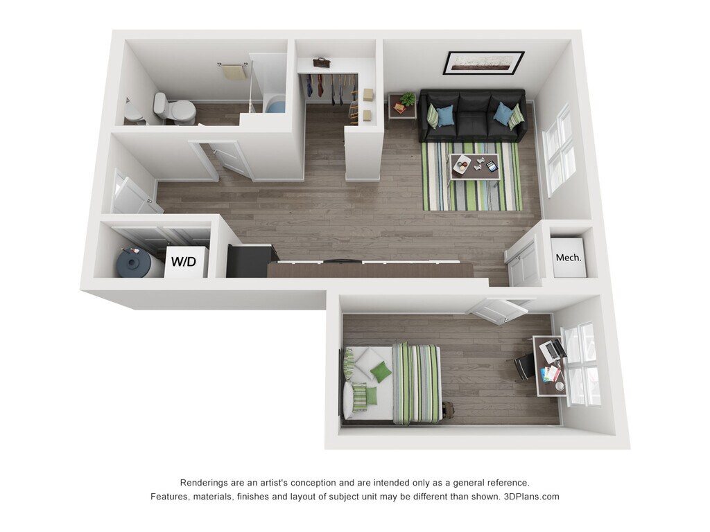 1 Dormitorio, 1 Baño, 567 pies²Disponible AhoraGalería del Modelo