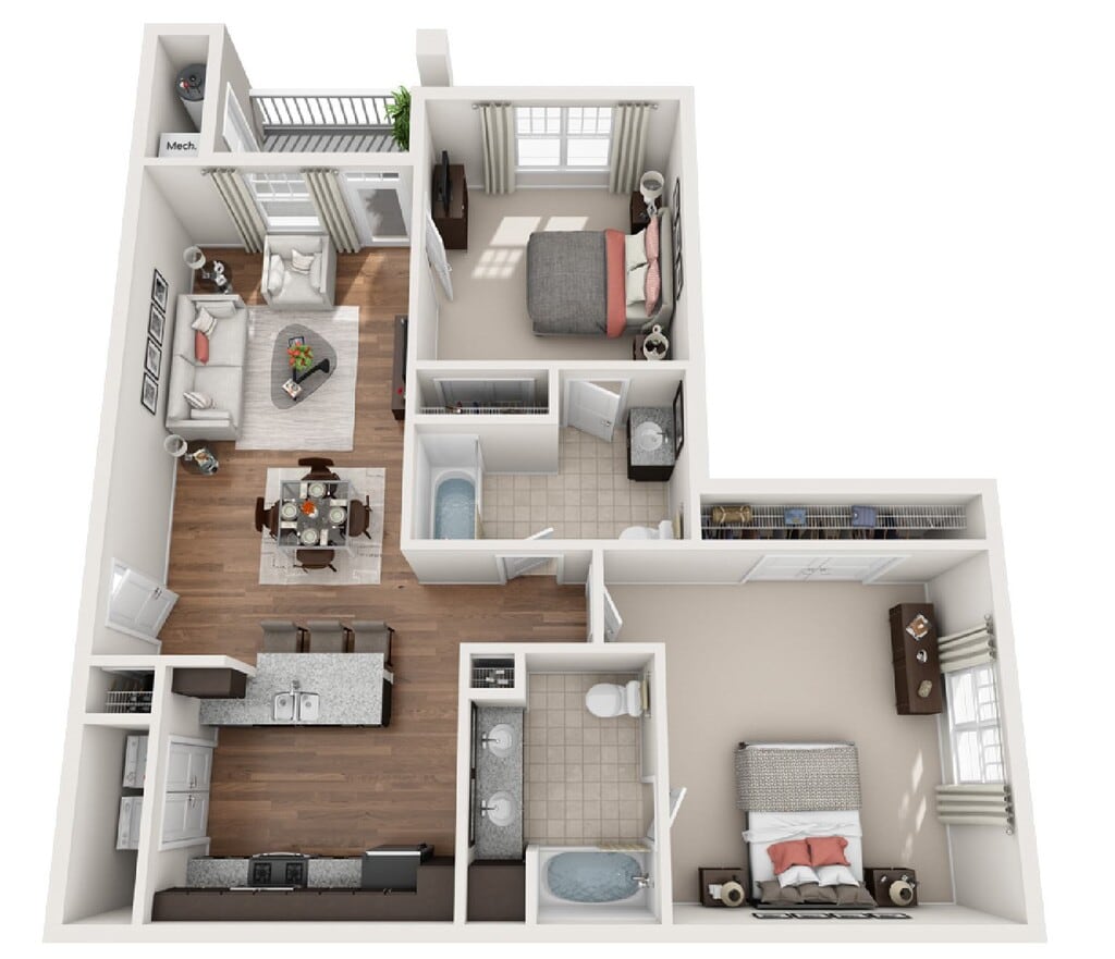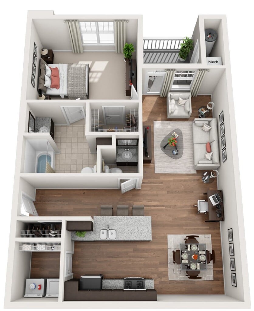 1 Dormitorio, 1 Baño, 731 pies²Disponible AhoraGalería del Modelo
