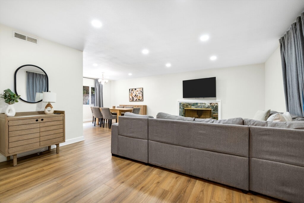 Nestled on a peaceful cul-de-sac, this beautifully updated home features wide plank flooring, soaring ceilings, recessed lighting, and an open-concept layout perfect for entertaining. The light-filled great room flows effortlessly into a chef’s kitchen with appliances, a spacious peninsula with tile flooring, and oak cabinets offering ample storage. Enjoy spacious bedrooms, including a grand primary suite with a walk-in closet and spa-like bath. The entrance is accented with elegant terrazzo tile, setting the tone for the rest of the home. The backyard is an entertainer’s dream—resort-style pool & spa, outdoor kitchen/BBQ, and multiple lounge areas. Bonus room with wet bar and separate pool access! Prime location near top schools, places of worship, shops, dining, and major freeways. Available furnished or unfurnished. A true SoCal gem!
