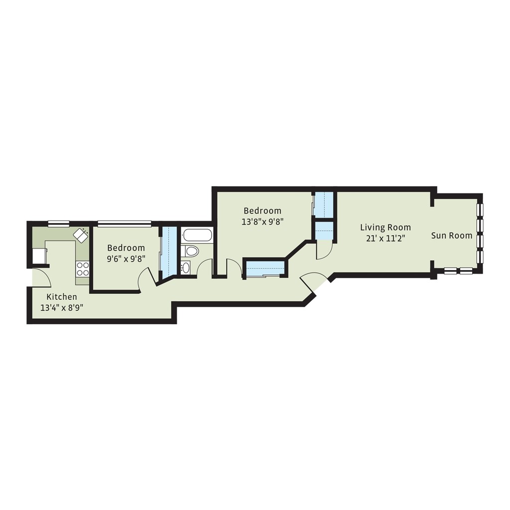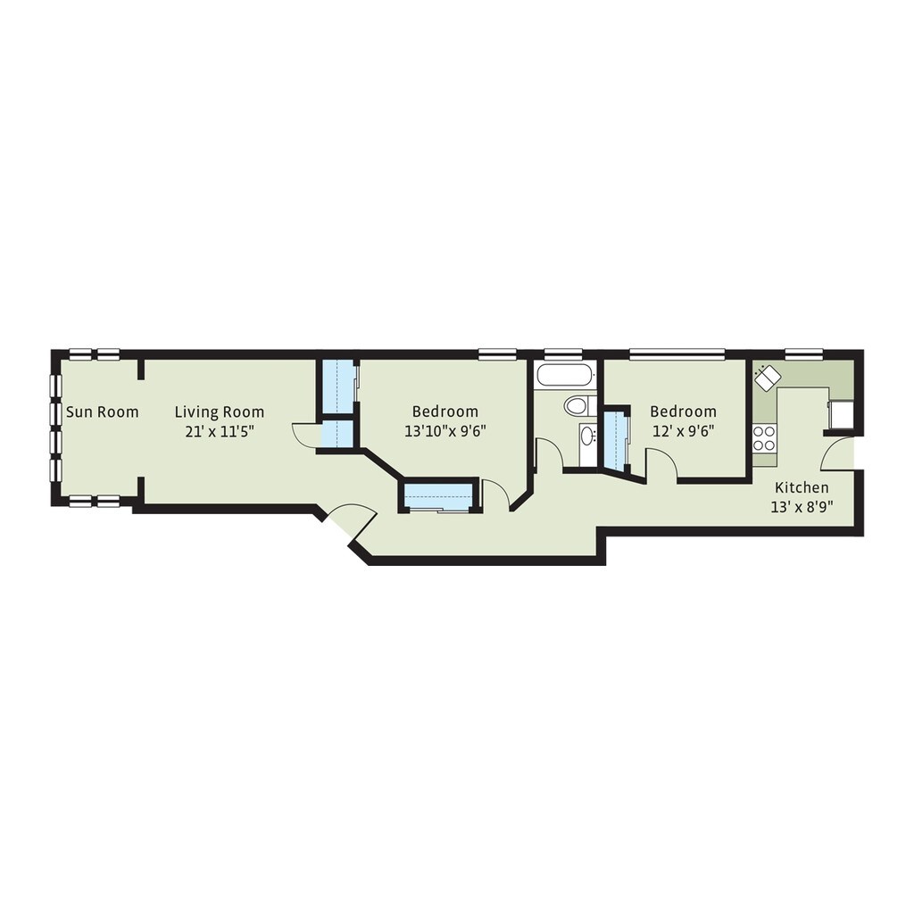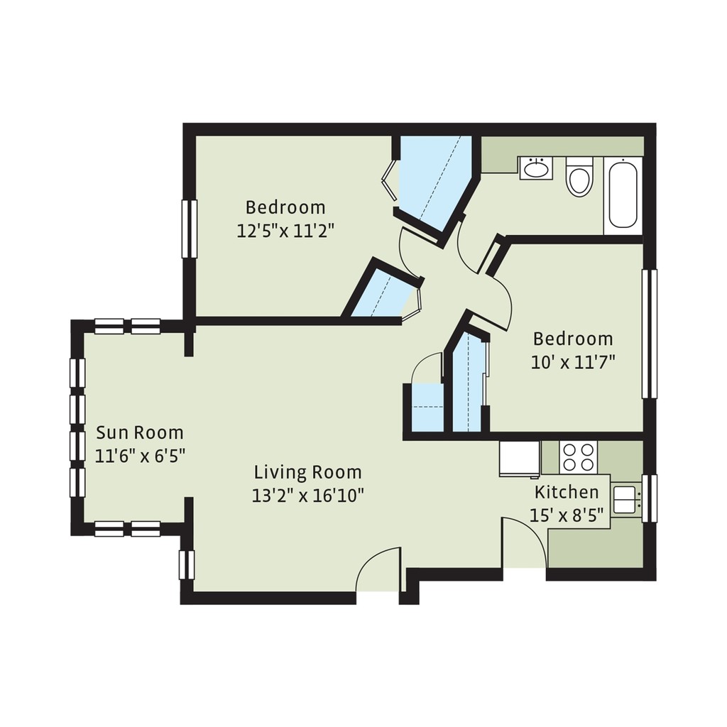 2 Dormitorios, 1 Baño, 870 pies²Galería del Modelo