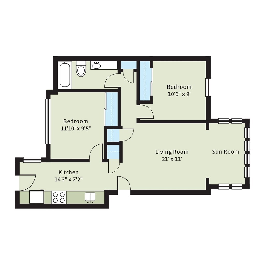2 Dormitorios, 1 Baño, 955 pies²El más grandeEsta opción tiene las unidades más grandes para este modeloGalería del Modelo