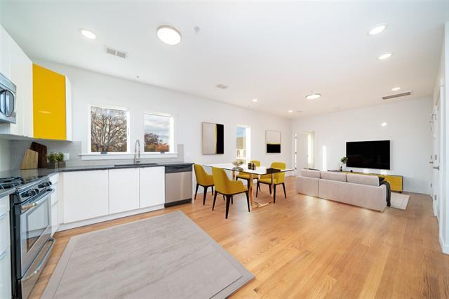 Stunning Newer Construction -Top Floor with NYC views! 2 bedrooms plus Den in Luxury Building now available for October 1st. Bright open layout with premium grade solid oak hardwood floors throughout. Lots of natural light and NYC skyline views with premium Andersen casement style windows. Each unit is equipped with Nest thermostats, central air, gas heat & LED recess lights. Windowed Kitchen has all brand new cabinets, granite countertops, stainless steel microwave & dishwasher. Large bathroom with bathtub. Soundproofing includes insulation in all walls, and resilient channels + double sheetrock construction between floors and at demising walls. Washer/dryer hookup and Laundry room in building. Owner can install in unit combo washer/dryer for additional $100 monthly rent. Virtual Doorman via Butterfly MX door access system. Elevator & pet friendly building with covered garage parking for an additional fee. Free locked bicycle storage. All units are wired w/ ethernet & are cable and FIOS ready. Building is LEED certified. Conveniently located in Union City close to Bergenline Ave Light Rail Station at 48th St. & steps away from public transportation, restaurants & shopping. 20 minute commute to NYC w/ numerous bus options, including at Kennedy & 42nd. St.