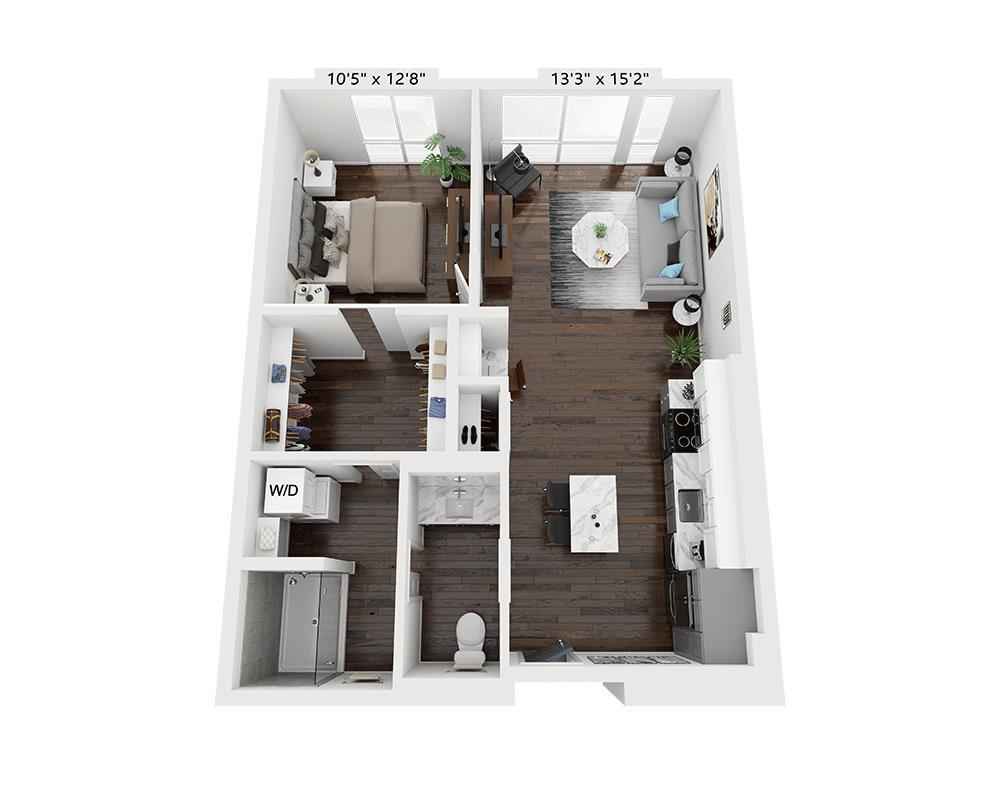 1 Dormitorio, 1 Baño, 909 pies²Precio Mensual TotalDisponible AhoraPrecio Mensual Total