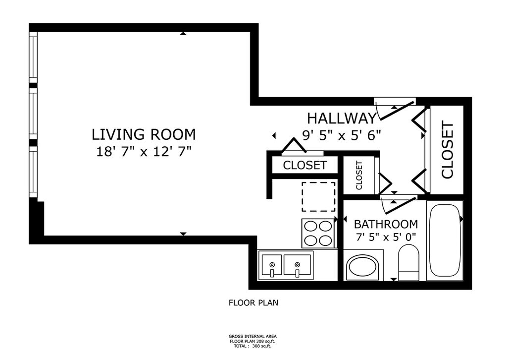 Estudio, 1 Baño, 300-385 pies²Galería del Modelo