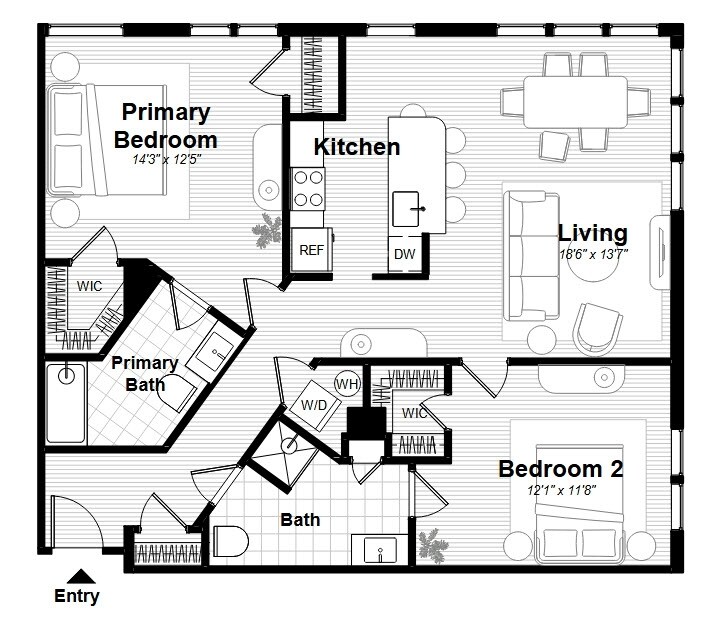 Modelo de apartamento: A01Desde $2,8401 Dormitorio, 1 Baño, 754 sq ftDisponible January 17, 2026PlanosFotos![]()