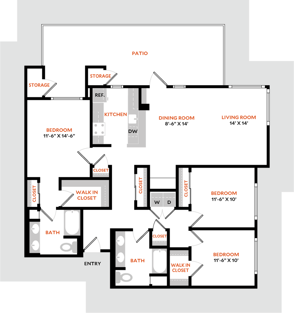 Modelo de apartamento: Plan 1CDesde $3,4761 Dormitorio, 1 Baño, 889 sq ftDisponible Ahora![]()