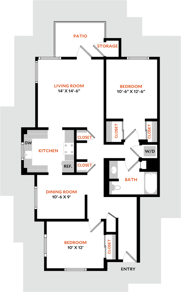 1 Dormitorio, 1 Baño, 1101 pies²El más grandeEsta opción tiene las unidades más grandes para este modeloGalería del Modelo