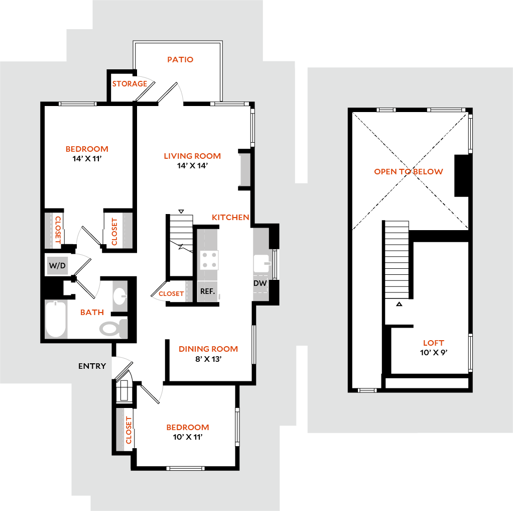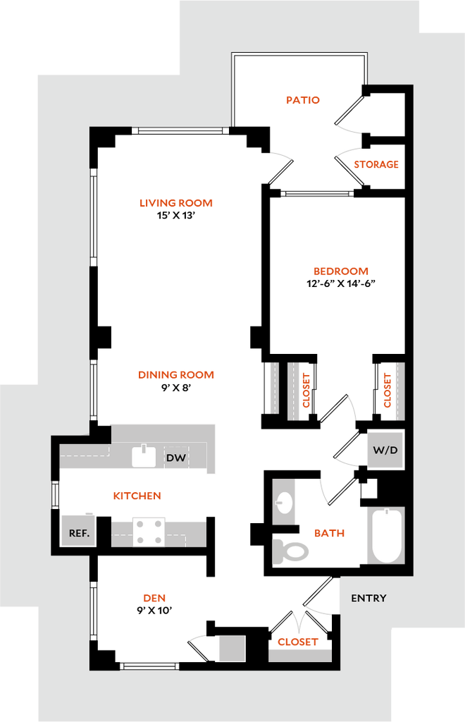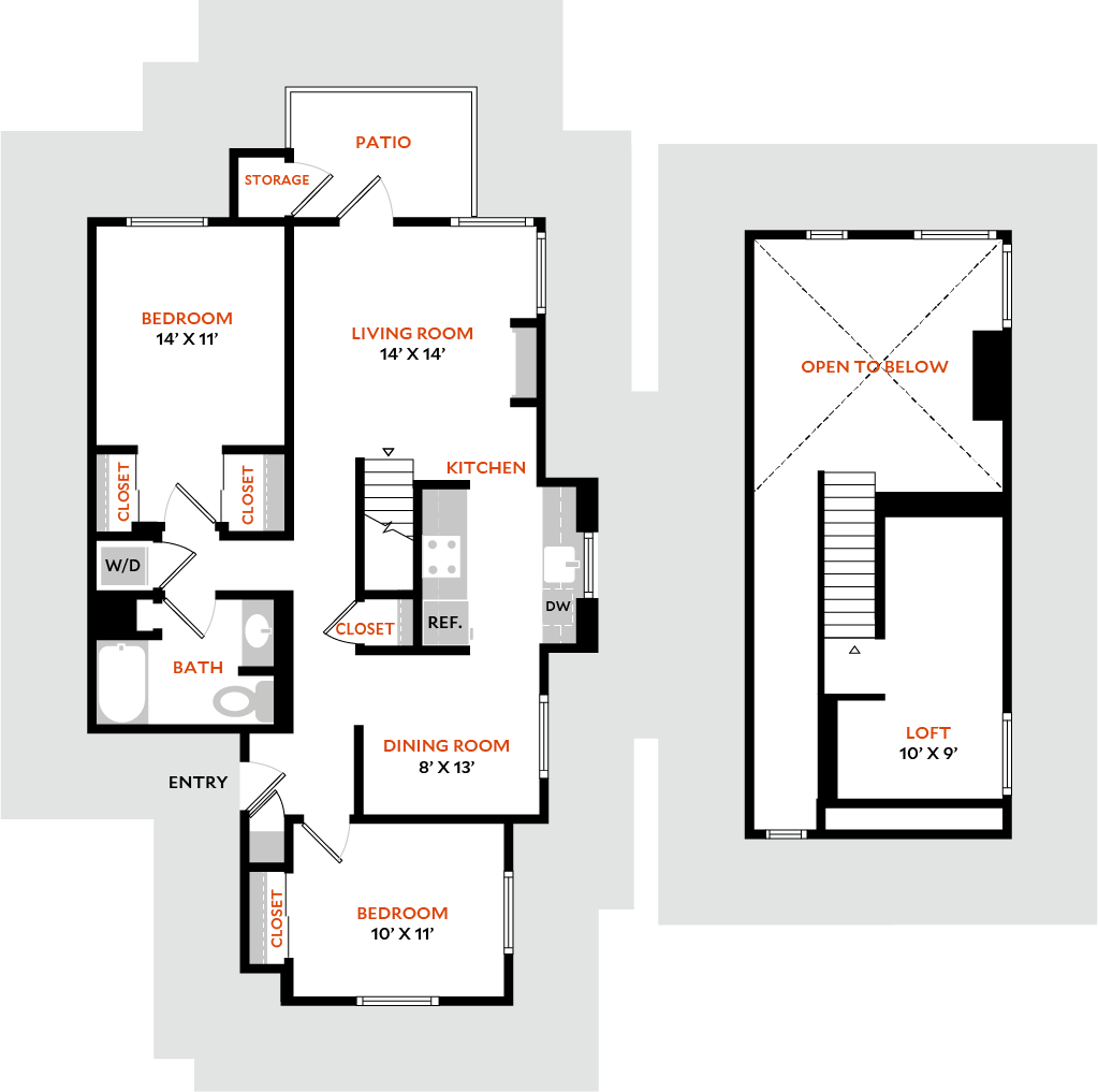 1 Dormitorio, 1 Baño, 853 pies²Disponible AhoraGalería del Modelo