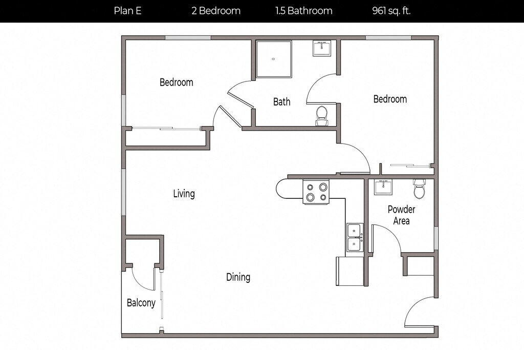2 Dormitorios, 1.5 Baños, 961 pies²Disponible AhoraGalería del Modelo