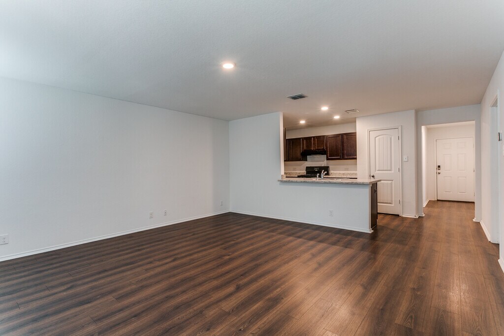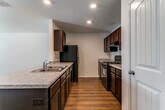 Beautifully maintained single-story home featuring 3 bedrooms and 2 full baths with a bright, open floor plan and high ceilings. Enjoy durable vinyl flooring throughout, a spacious living/dining area, and a well-equipped kitchen perfect for entertaining. The primary suite includes a walk-in closet and full bath with a tub/shower combo. The two additional bedrooms are nicely sized. Perks include a separate utility room and attached one-car garage. Washer, dryer, and lawn care included! Large fenced and private yard backs up to a green belt. Comfortable, functional, and move-in ready! Madison Peterson Leasing Specialist Exquisite Property Services