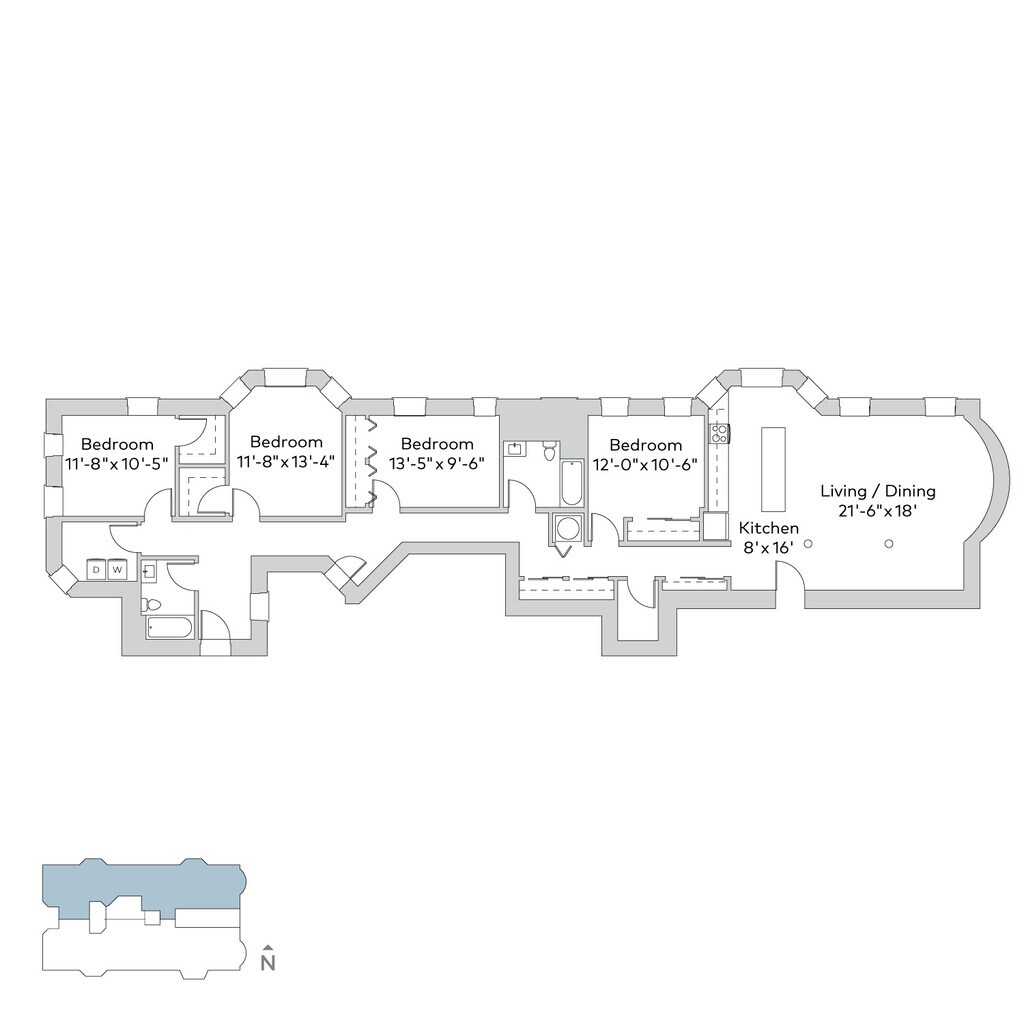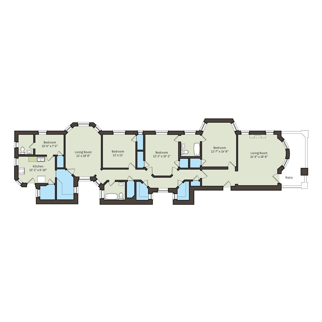 5700-4bA - Plano 1 Unidad de apartamento: 5700-1Modelo de apartamento: 5700-4bA4 Dormitorios, 2 Baños, 2265 sq ftDisponible Ahora5700-4bB