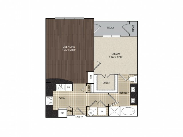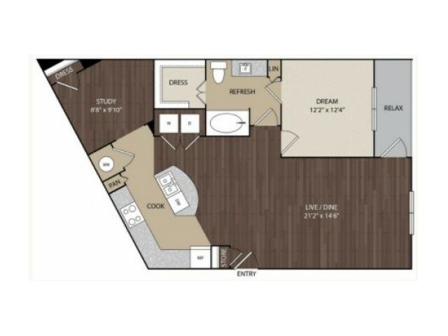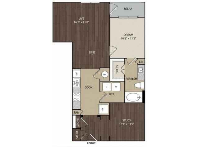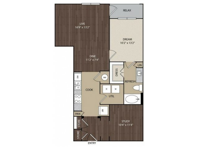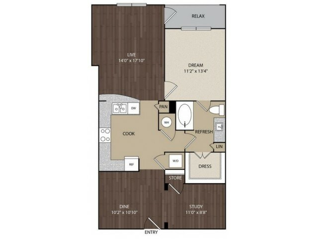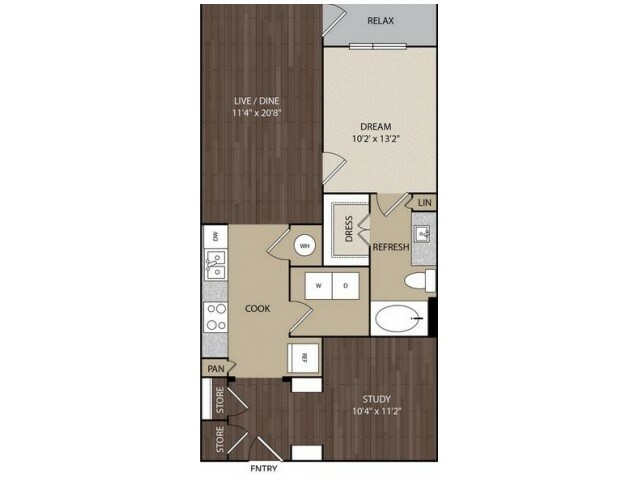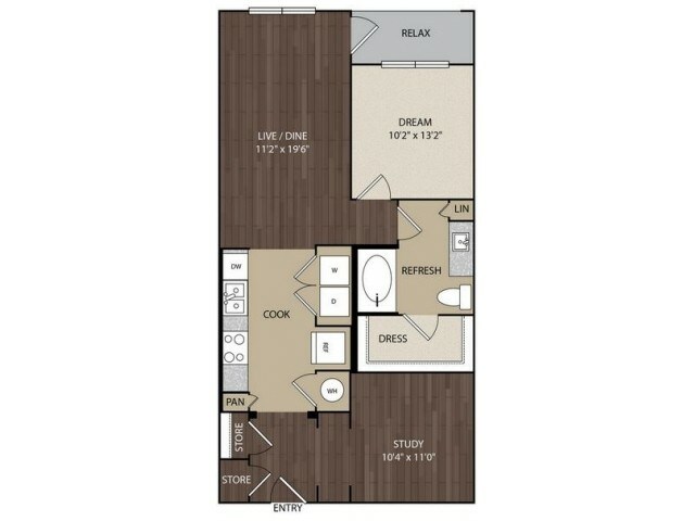 S3 - Plano 1 Unidad de apartamento: 631Modelo de apartamento: S3$1,307Estudio, 1 Baño, 592 sq ftDisponible AhoraPlano: S2A