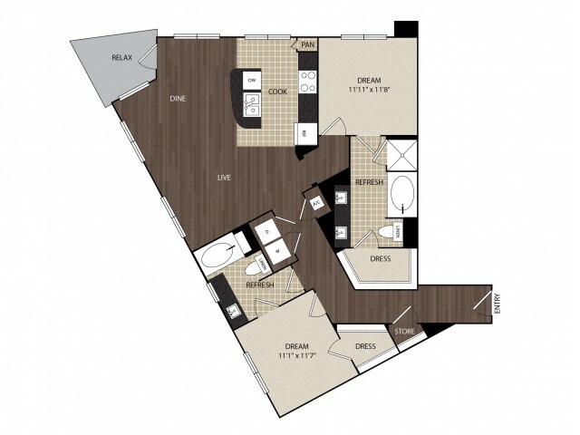 1 Dormitorio, 1 Baño, 917 pies²Disponible AhoraGalería del Modelo