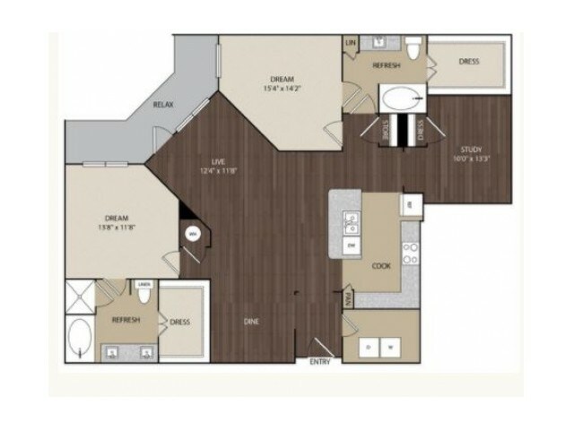 Modelo de apartamento: S3Desde $1,307Estudio, 1 Baño, 592 sq ftDisponible Ahora![]()