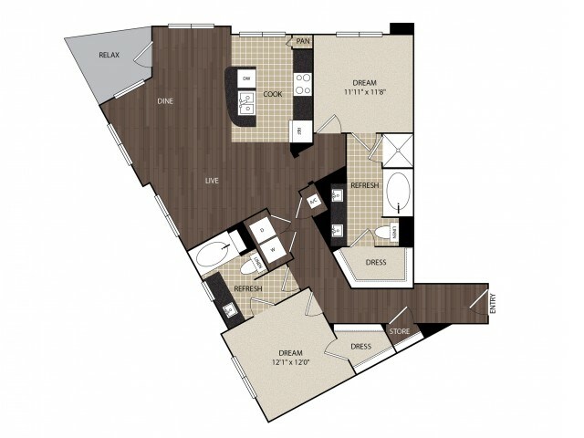 1 Dormitorio, 1 Baño, 787 pies²Disponible AhoraGalería del Modelo