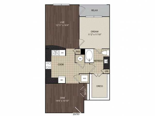 A3 - Plano 1 Unidad de apartamento: 611Modelo de apartamento: A3$1,4451 Dormitorio, 1 Baño, 772 sq ftDisponible AhoraPlano: A4