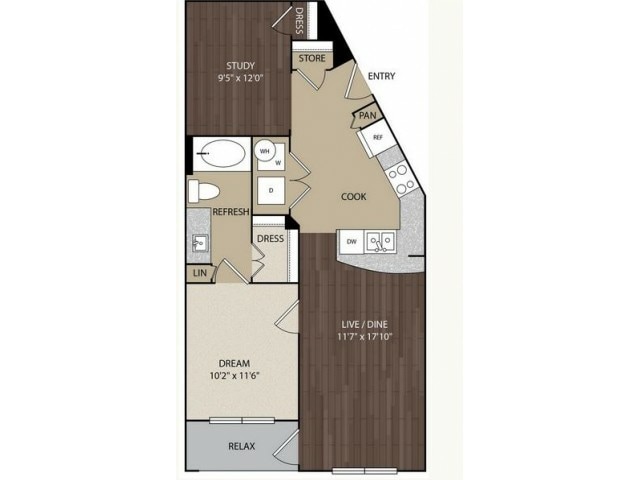 A4 - Plano 1 Unidad de apartamento: 559Modelo de apartamento: A4$1,4851 Dormitorio, 1 Baño, 787 sq ftDisponible AhoraPlano: A7A